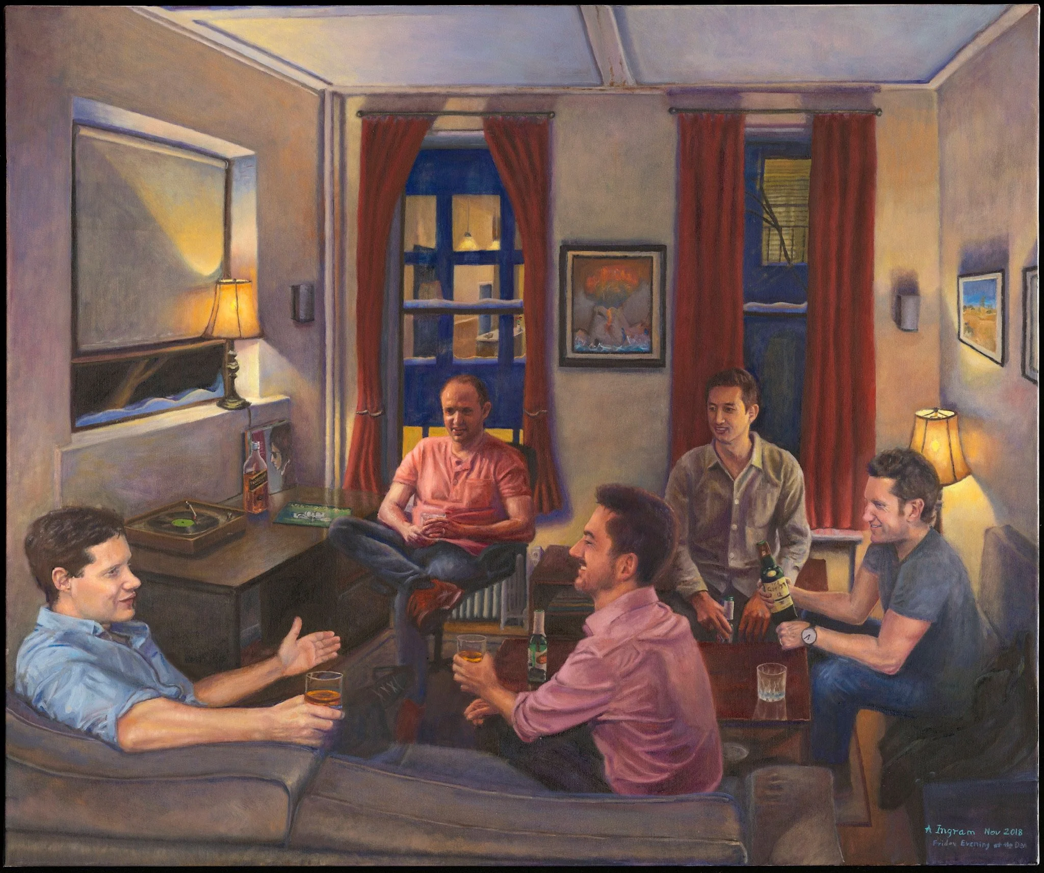 Friday Night at The Den Oil on Canvas 44 x 40 in. 2018
